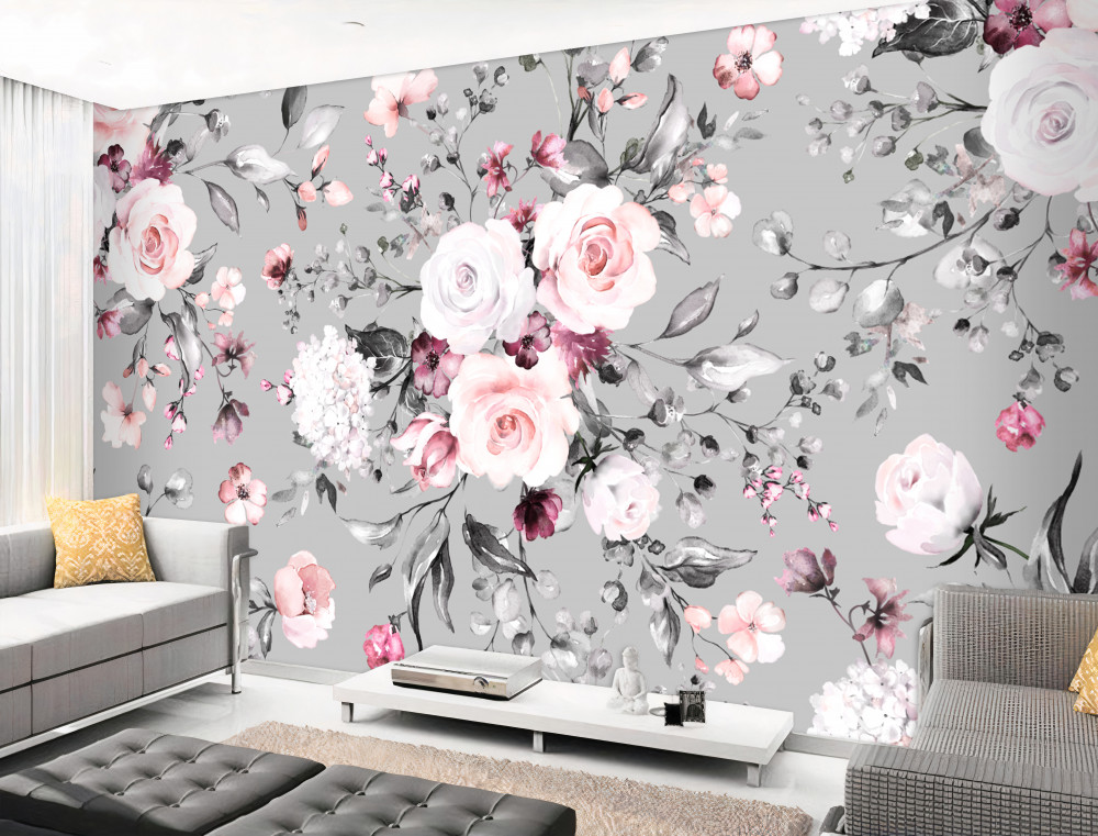 Tapeta Fototapeta blade róże na szarym tle (artykuł a88446 ) z kategorii Fototapety Kwiaty 3D