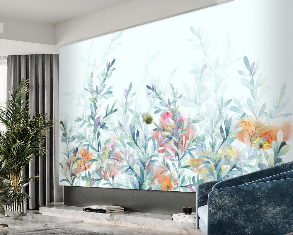 Tapeta Fototapeta błękitne kwiaty (artykuł a91695 ) z kategorii Fototapety Kwiaty 3D