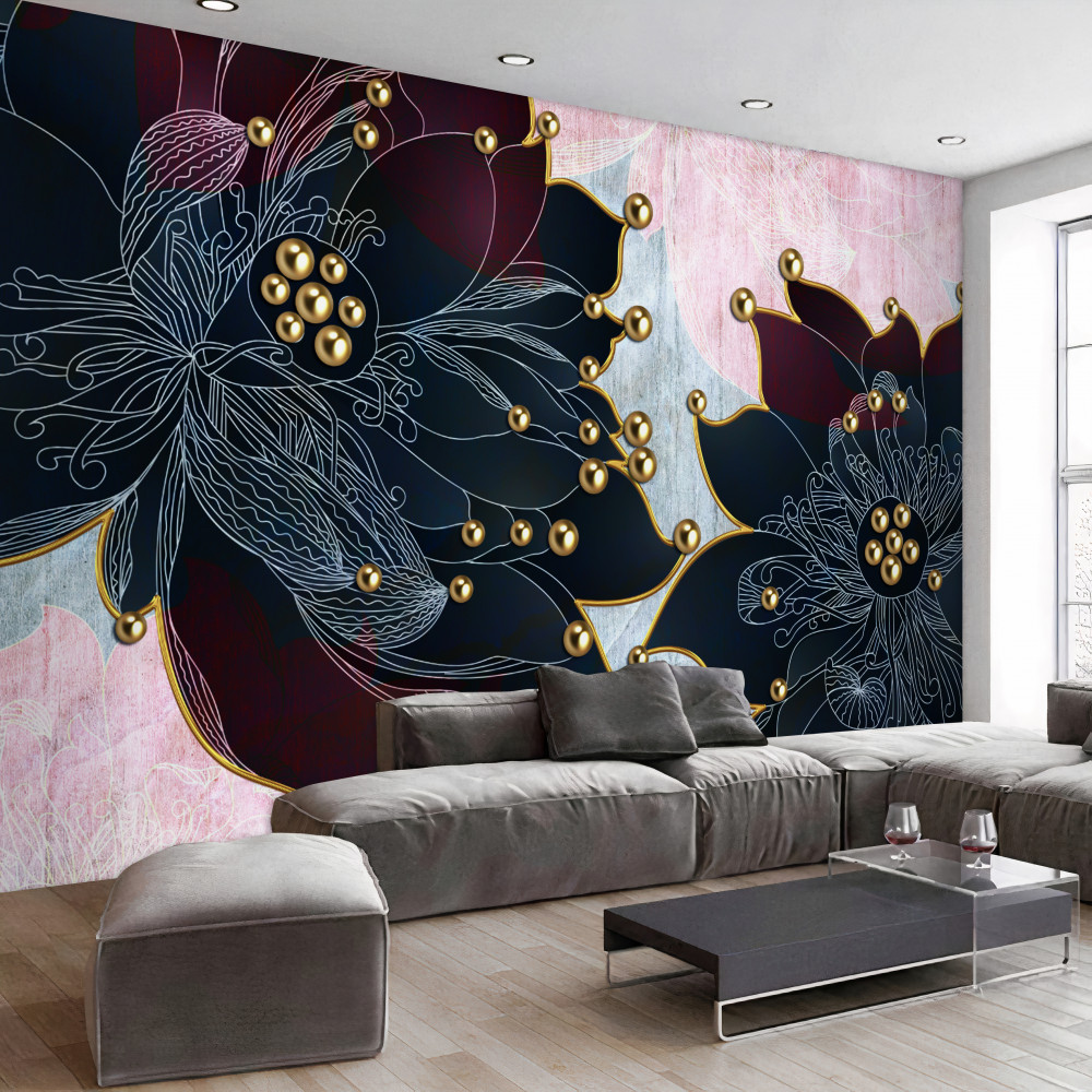 Tapeta Fototapeta bordowy niebieski nocny kwiat (artykuł pb2226 ) z kategorii Fototapety Kwiaty 3D
