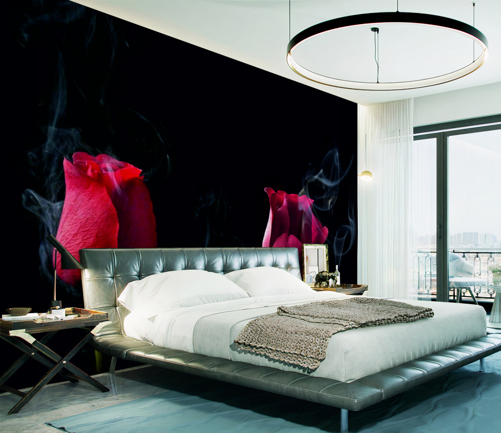 Tapeta Fototapeta czerwona róża w dymie (artykuł a90810 ) z kategorii Fototapety Kwiaty 3D