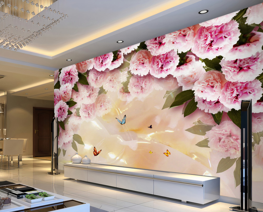 Tapeta Fototapeta delikatne różowe kwiaty i motyle (artykuł a91703 ) z kategorii Fototapety Kwiaty 3D