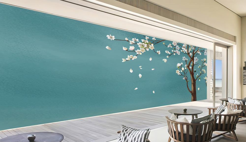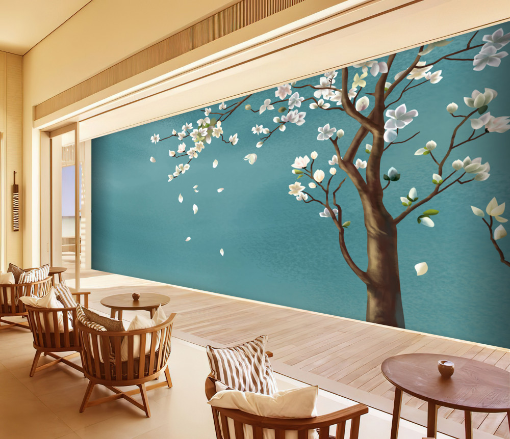 Tapeta Fototapeta kwiat drzewa na turkusowym tle (artykuł a91709 ) z kategorii Fototapety Kwiaty 3D
