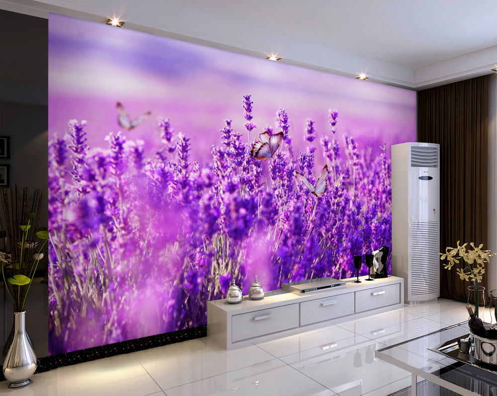 Tapeta Fototapeta motyle i liliowa lawenda (artykuł a91768 ) z kategorii Fototapety Kwiaty 3D