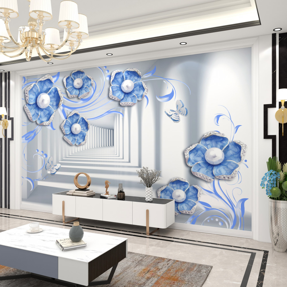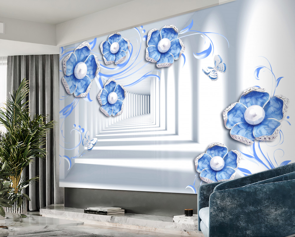 Tapeta Fototapeta niebieskie kwiaty w tunelu (artykuł a91738 ) z kategorii Fototapety Kwiaty 3D