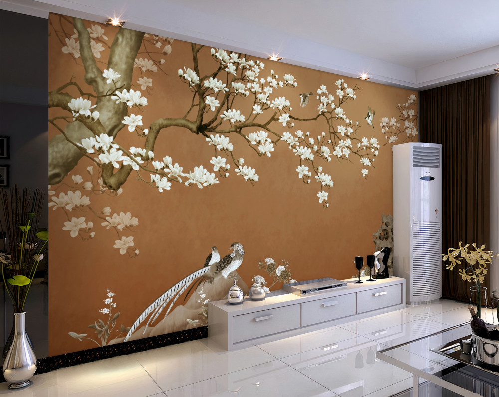 Tapeta Fototapeta ptaki i białe kwiaty wiśni (artykuł a91972 ) z kategorii Fototapety Kwiaty 3D