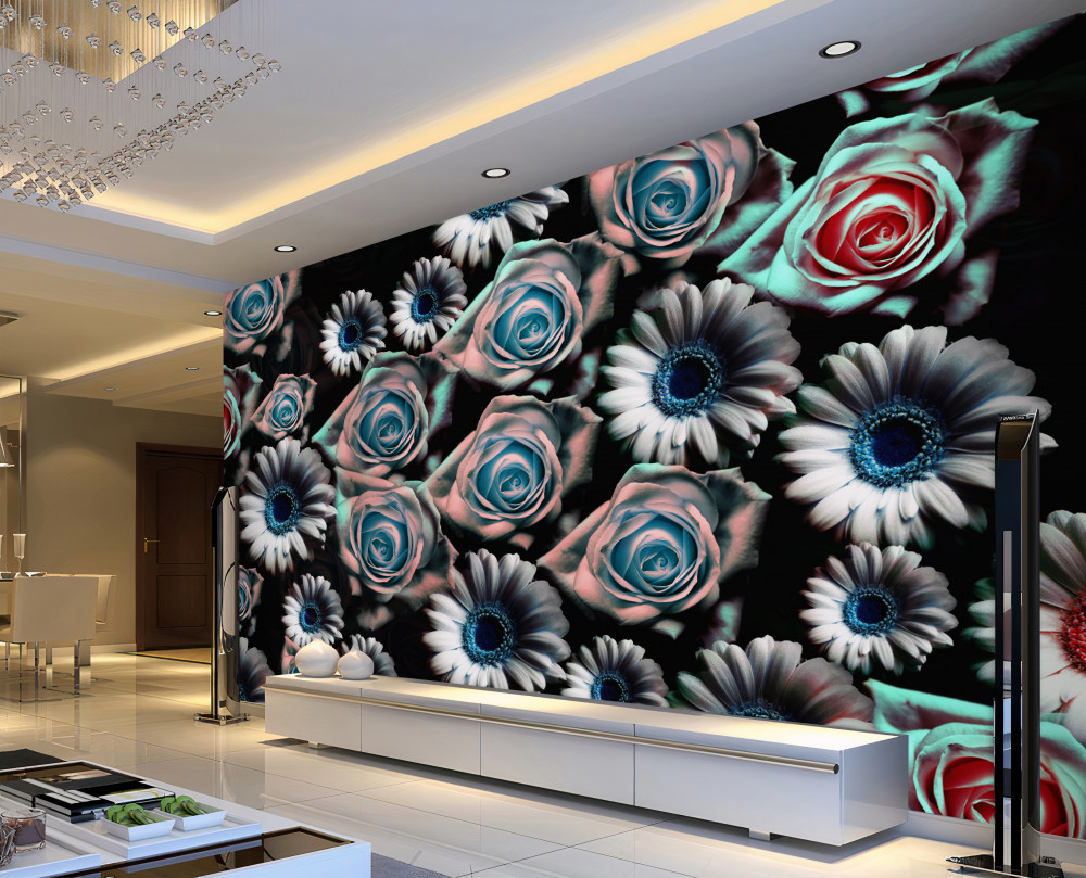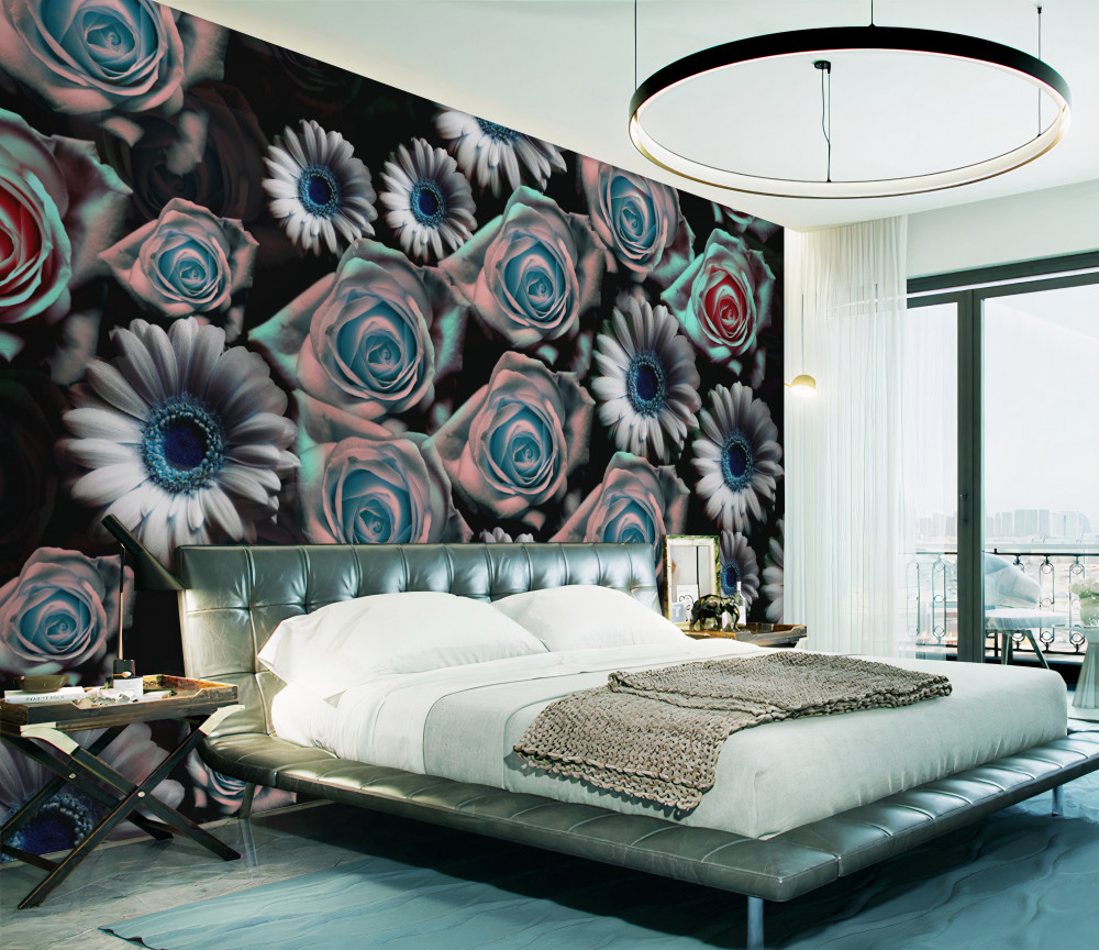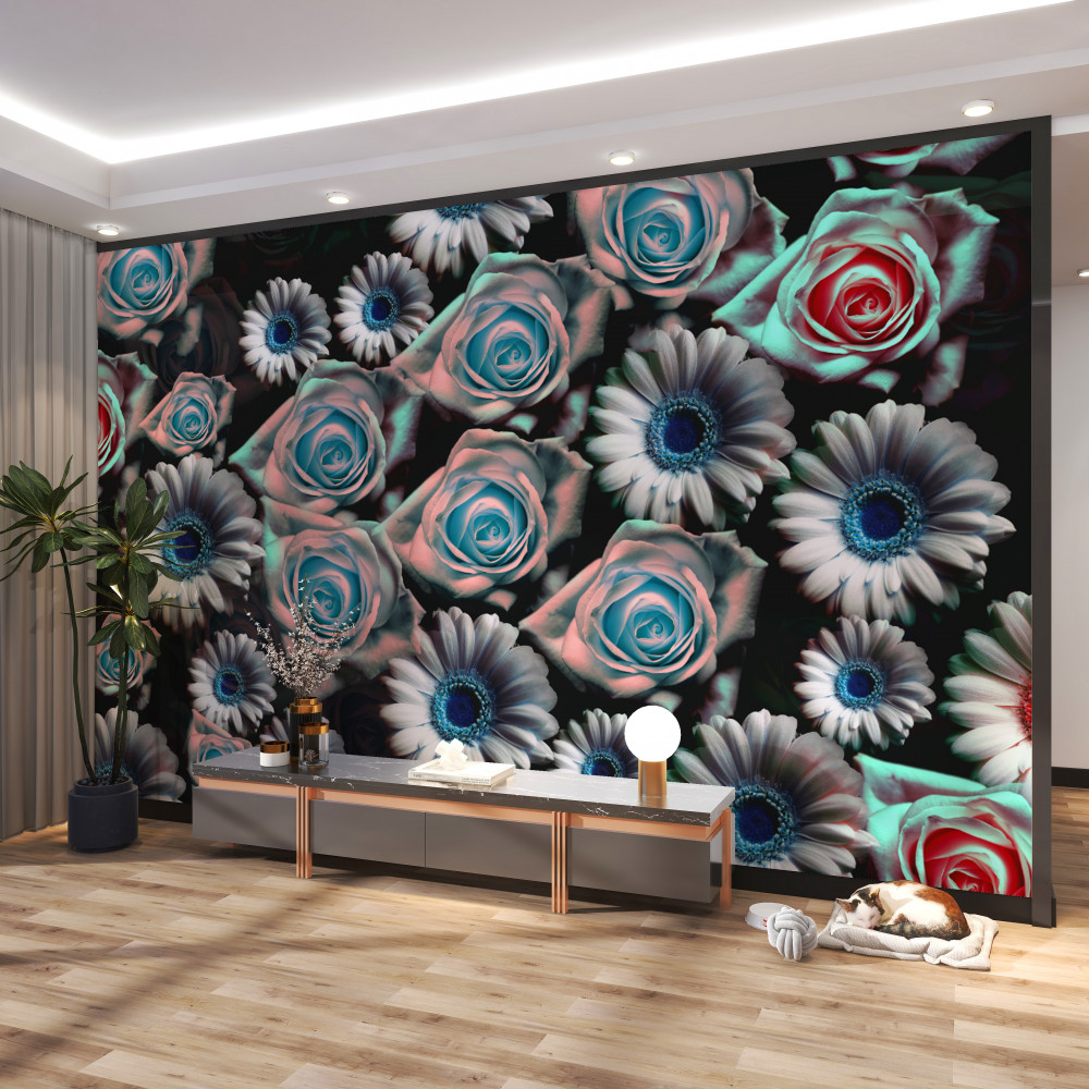 Tapeta Fototapeta róże i gerbery na czarnym tle (artykuł pb1157 ) z kategorii Fototapety Kwiaty 3D