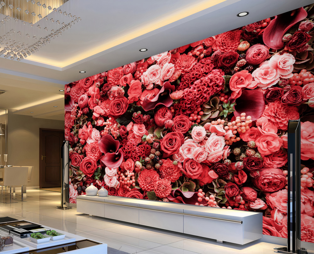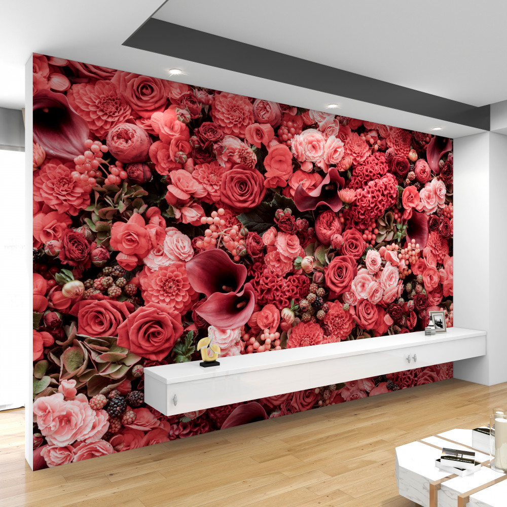 Tapeta Fototapeta różne czerwone letnie kwiaty (artykuł a88356 ) z kategorii Fototapety Kwiaty 3D