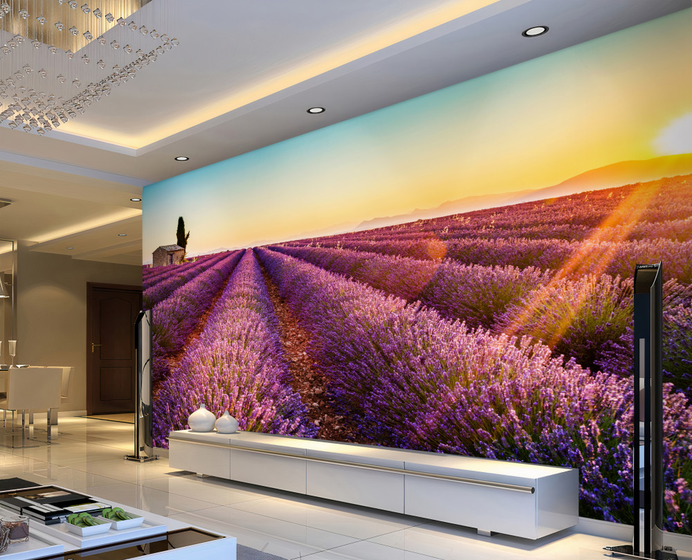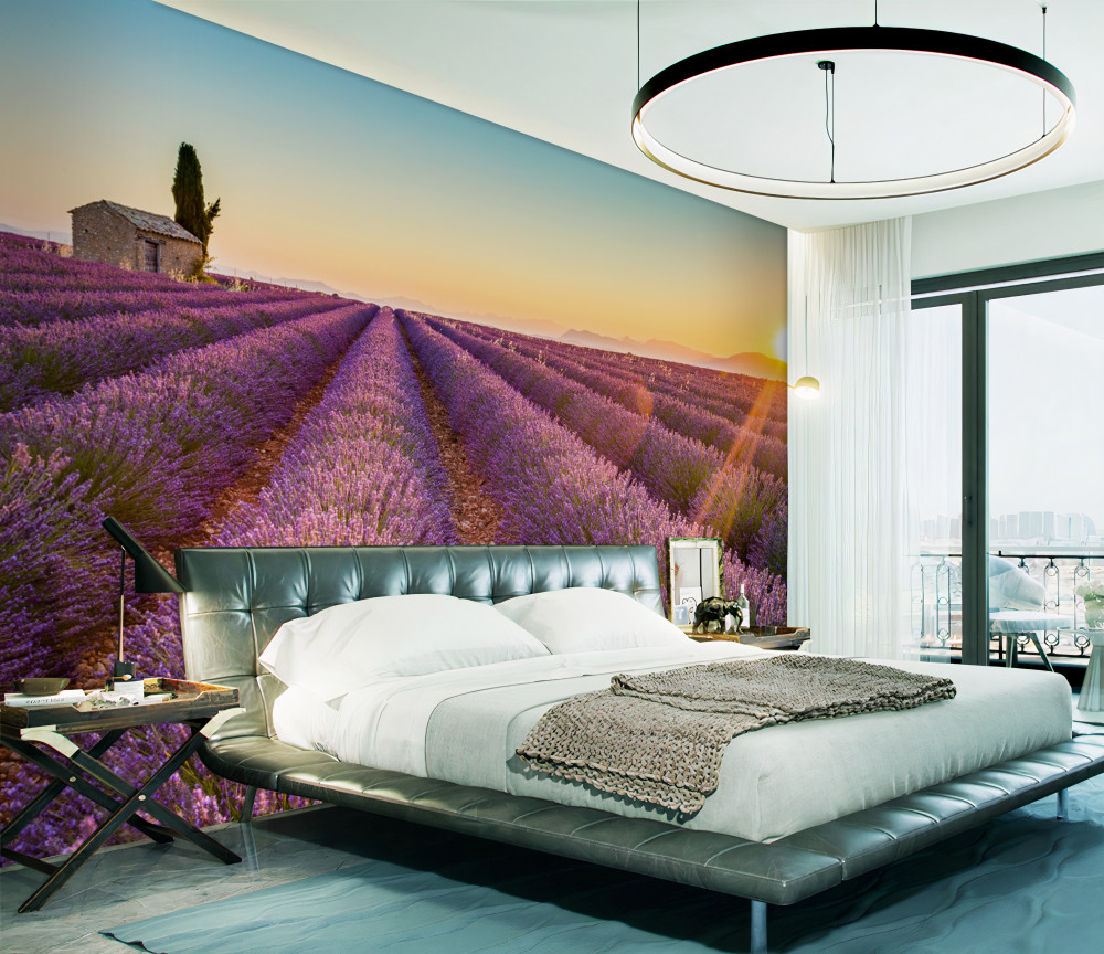 Tapeta Fototapeta świt nad lawendą łąkową (artykuł a89315 ) z kategorii Fototapety Kwiaty 3D