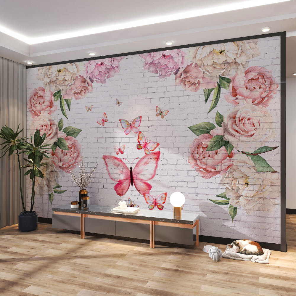 Tapeta Fototapeta szyfonowy motyl w kwiaty (artykuł a92801 ) z kategorii Fototapety Kwiaty 3D