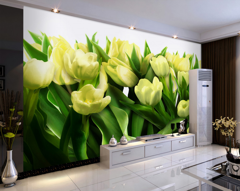 Tapeta Fototapeta żółte tulipany z zieleniną (artykuł a90823 ) z kategorii Fototapety Kwiaty 3D