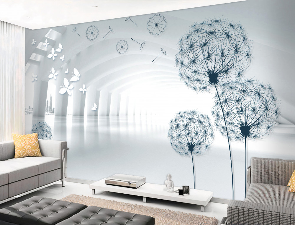 Tapeta Fototapeta zwiewne białe kokardki i mlecze (artykuł pb10043 ) z kategorii Fototapety Kwiaty 3D