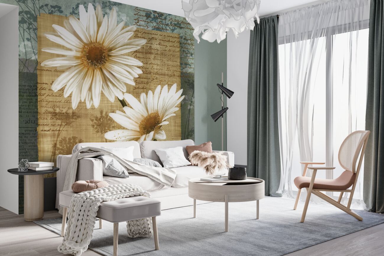 Tapeta Fototapeta Biały rumianek nad starym literem (artykuł a99836 ) z kategorii Fototapety Kwiaty