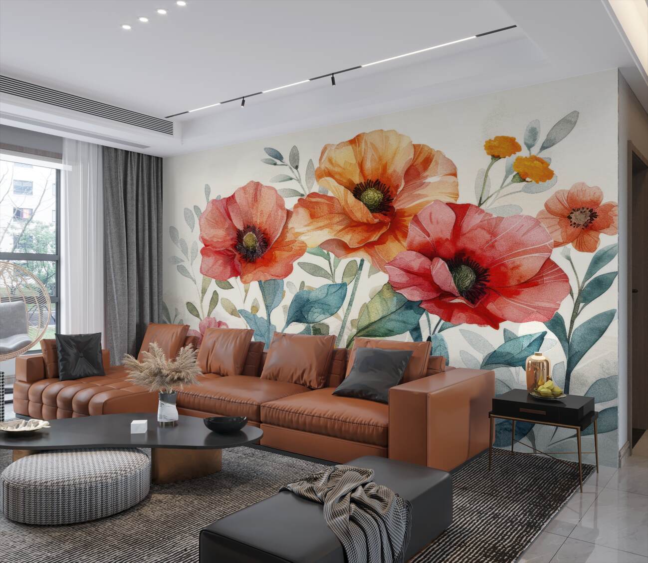 Tapeta Fototapeta Bukiet czerwonych i pomarańczowych maków (artykuł u14010 ) z kategorii Fototapety Kwiaty