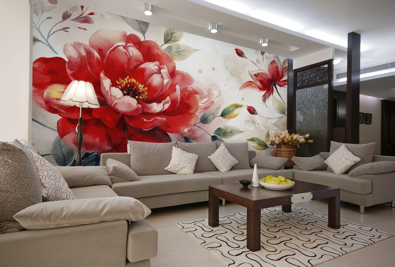 Tapeta Fototapeta Czerwone jasne kwiaty akwareli (artykuł u14041 ) z kategorii Fototapety Kwiaty