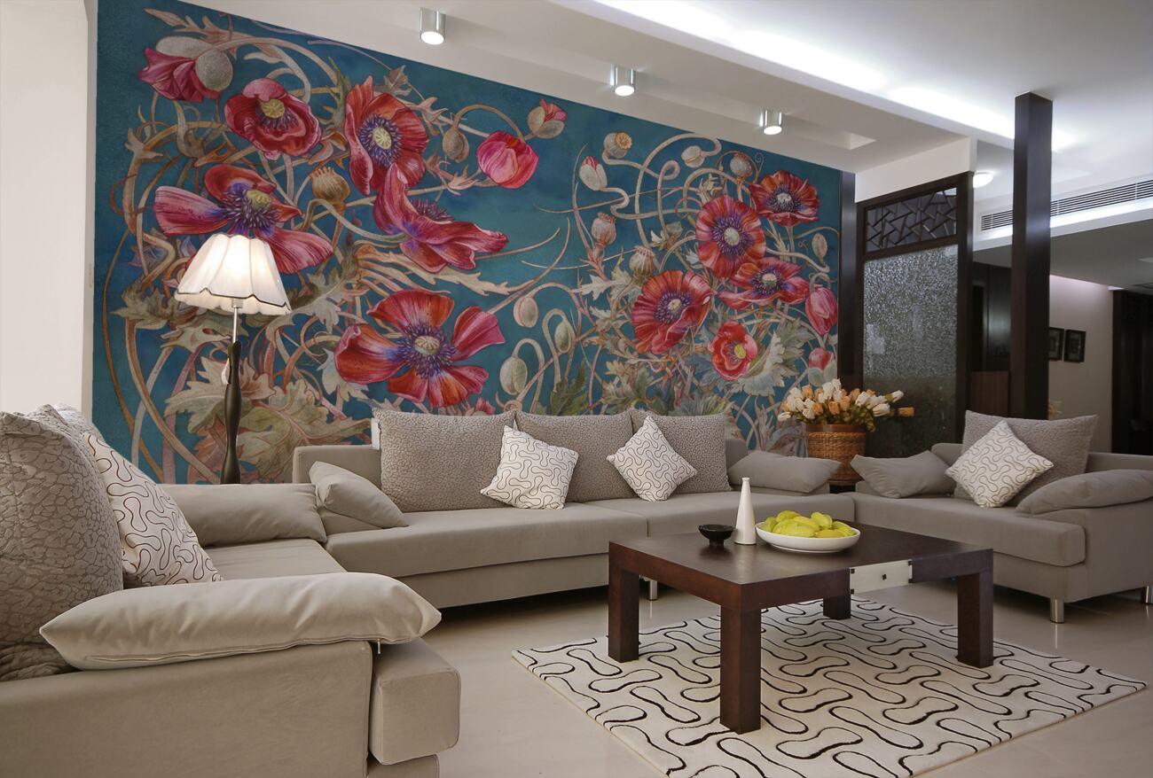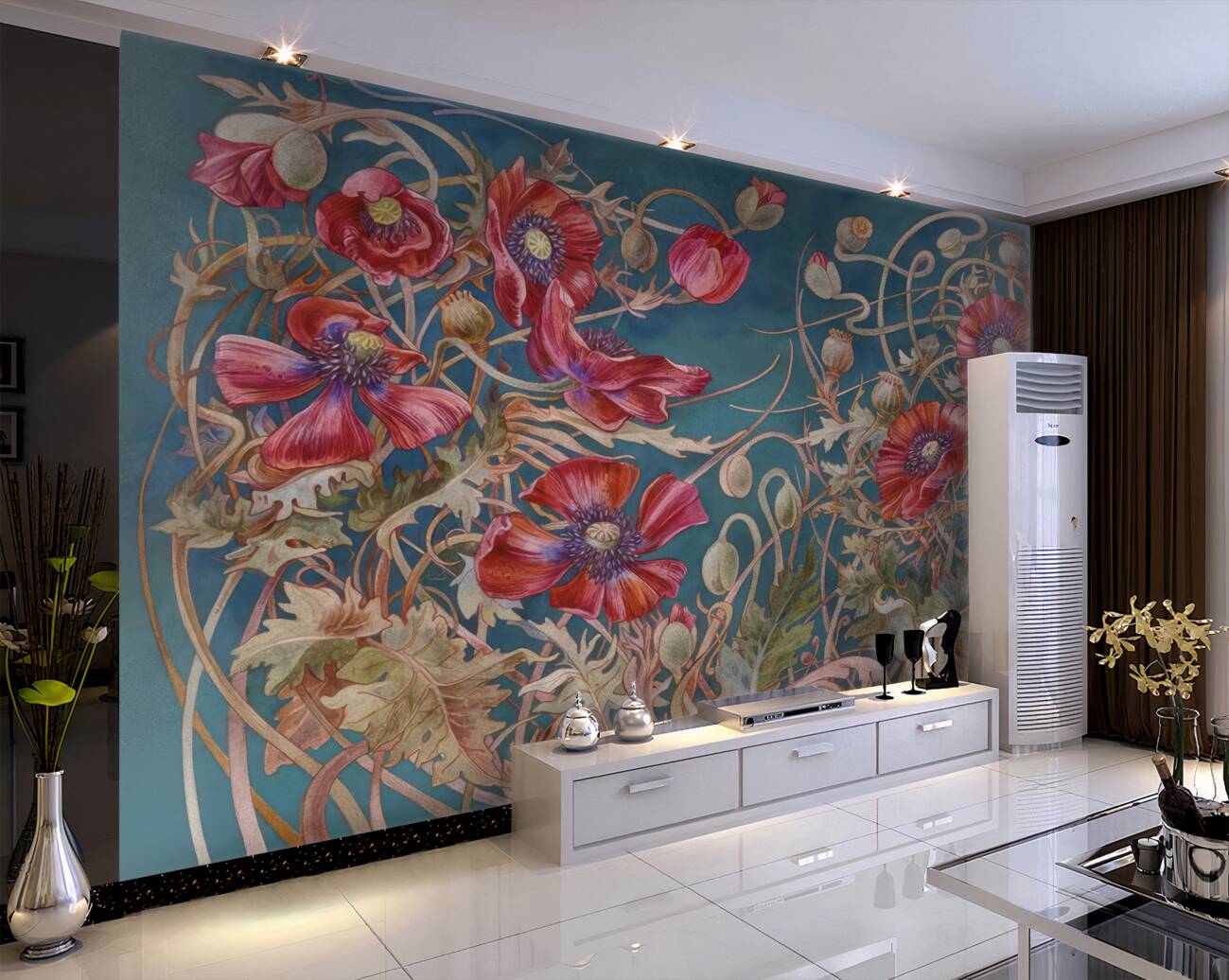 Tapeta Fototapeta Czerwone Poppies i Gerbers na łące (artykuł a99242 ) z kategorii Fototapety Kwiaty