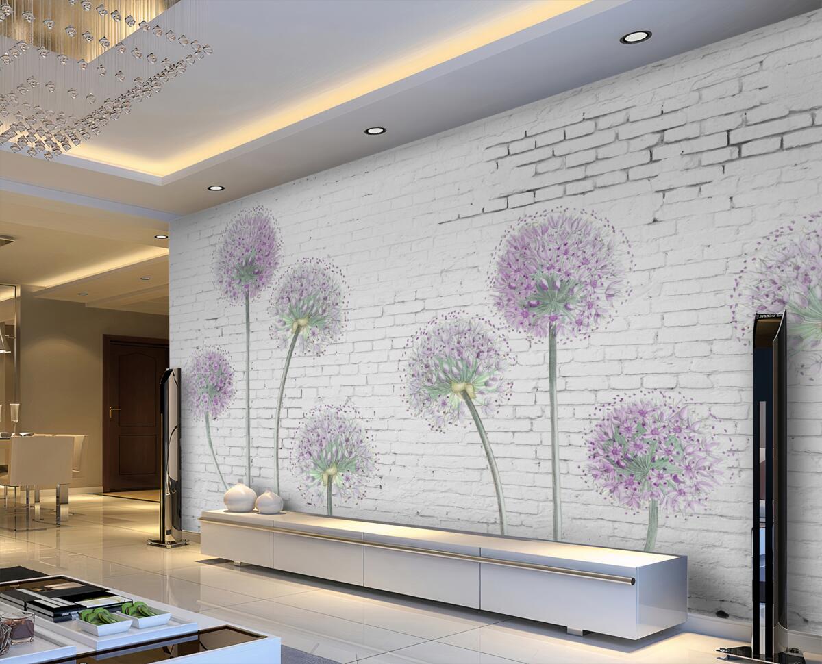Tapeta Fototapeta duże głowy mniszka lekarskiego na ścianie z cegły (artykuł a94053 ) z kategorii Fototapety Kwiaty