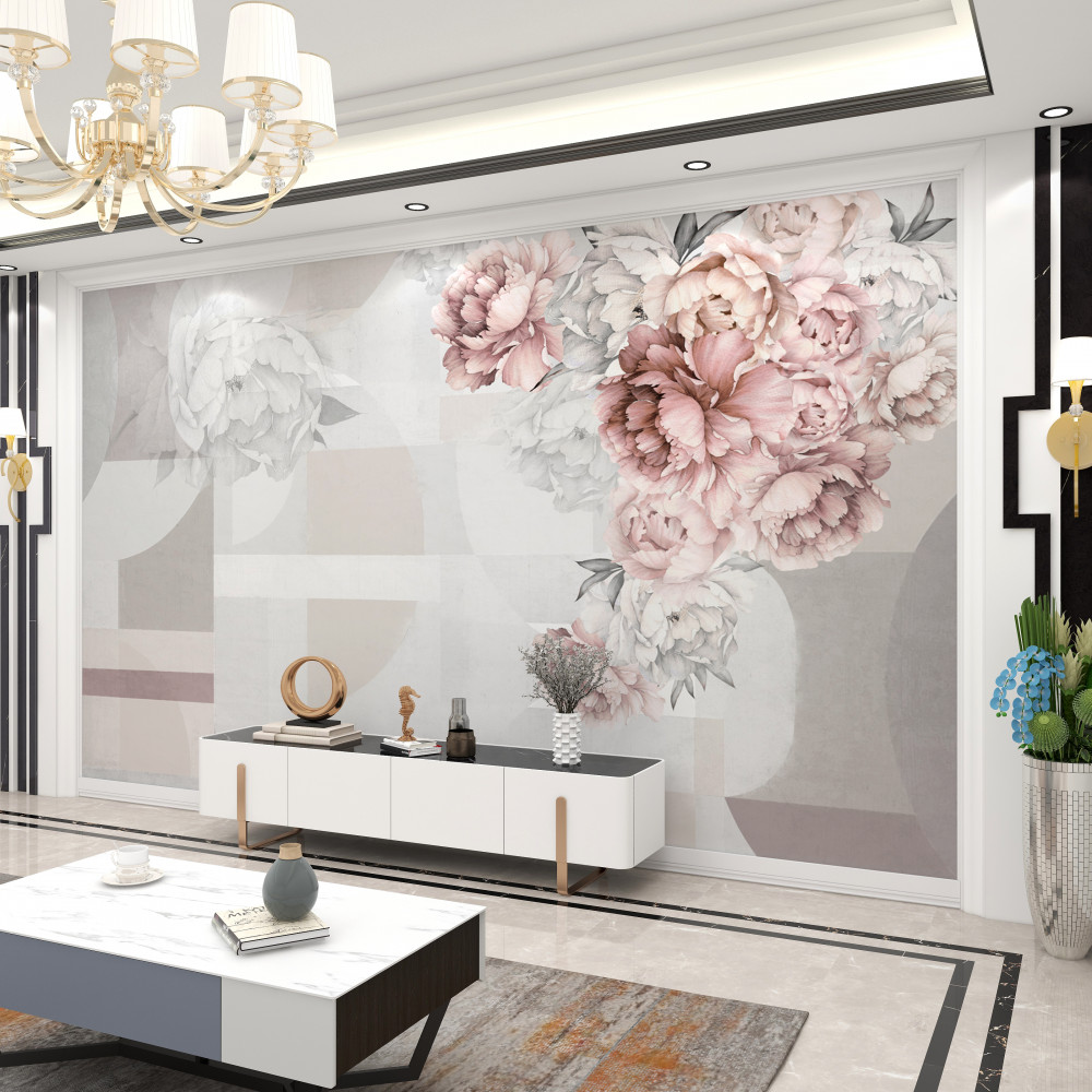 Fototapeta duże kwiaty na szarym tle