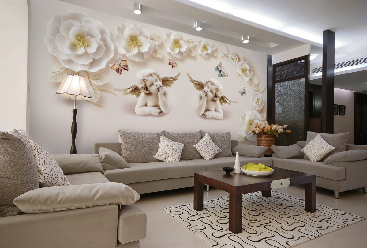 Tapeta Fototapeta Dwa anioły, białe róże i motyle (artykuł a91006 ) z kategorii Fototapety Kwiaty