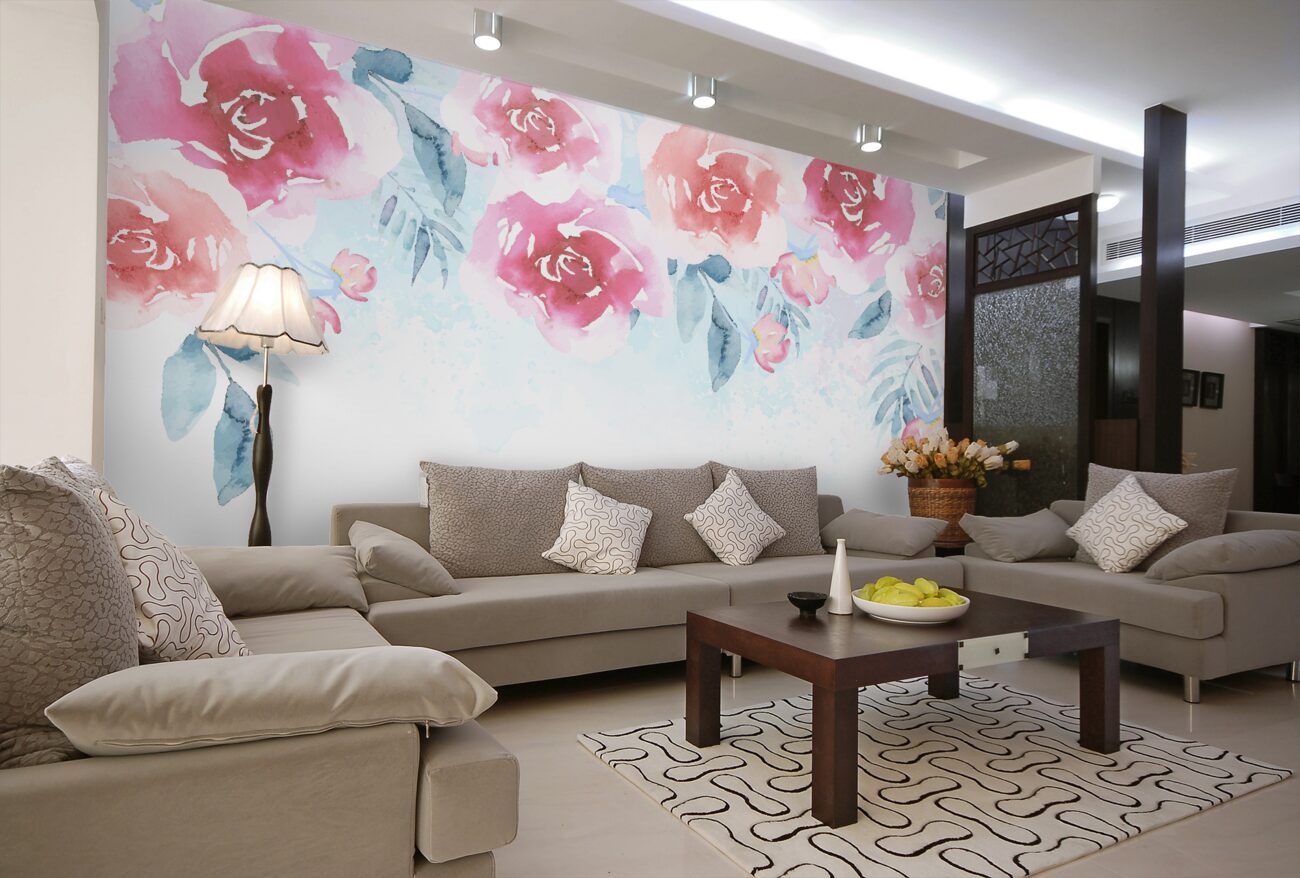 Tapeta Fototapeta Jasne kwiaty na gałęziach akwarelowych (artykuł u11134 ) z kategorii Fototapety Kwiaty