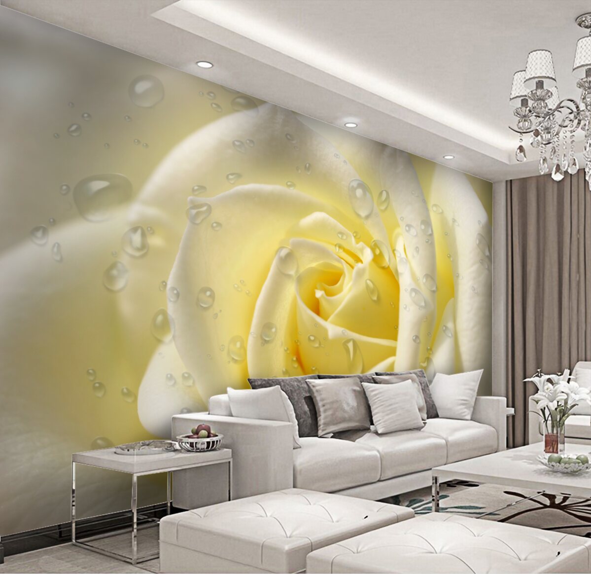 Tapeta Fototapeta Krople wody na żółtej róży (artykuł a91016 ) z kategorii Fototapety Kwiaty
