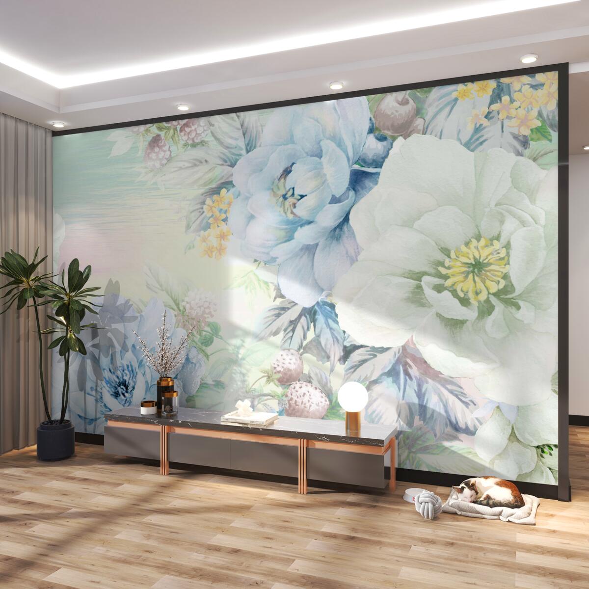 Tapeta Fototapeta Kwiaty białe i niebieskie (artykuł a92838 ) z kategorii Fototapety Kwiaty