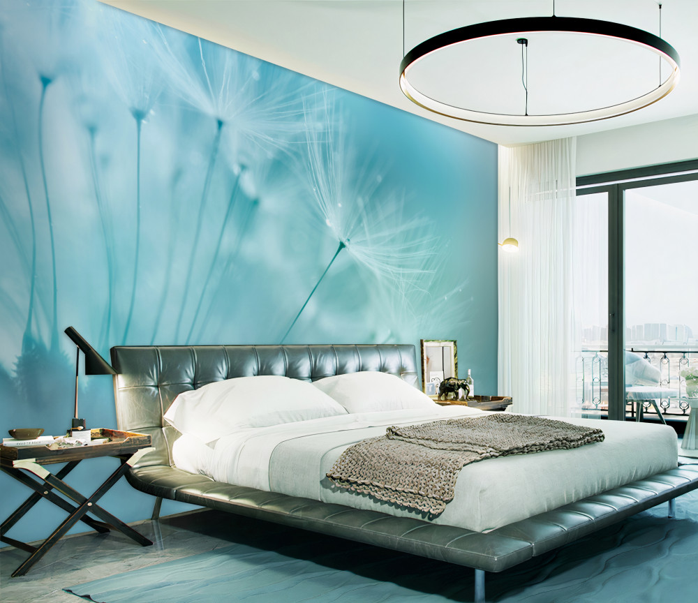 Tapeta Fototapeta kwiaty mniszka lekarskiego na błękitnym niebie (artykuł a92986 ) z kategorii Fototapety Kwiaty