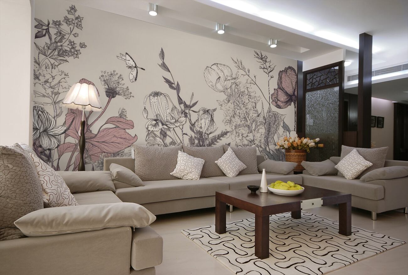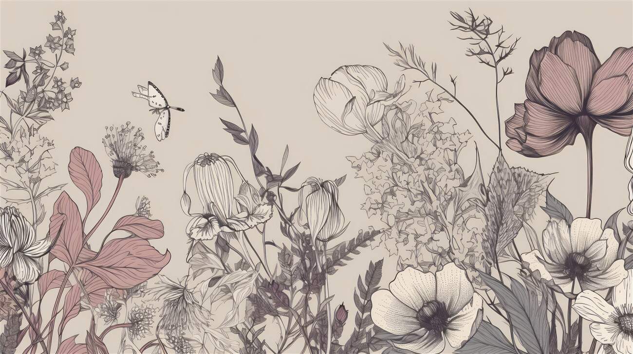 Tapeta Fototapeta Kwiaty polowe i ilustracja motyli (artykuł u11622 ) z kategorii Fototapety Kwiaty