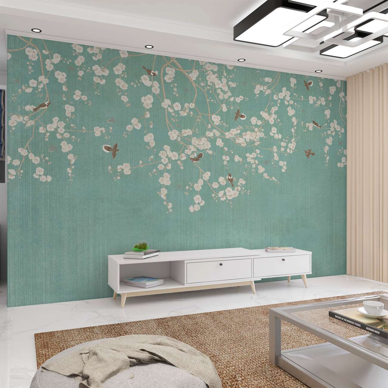 Tapeta Fototapeta Łagodne gałęzie kwiatów i ptaków (artykuł a99053 ) z kategorii Fototapety Kwiaty