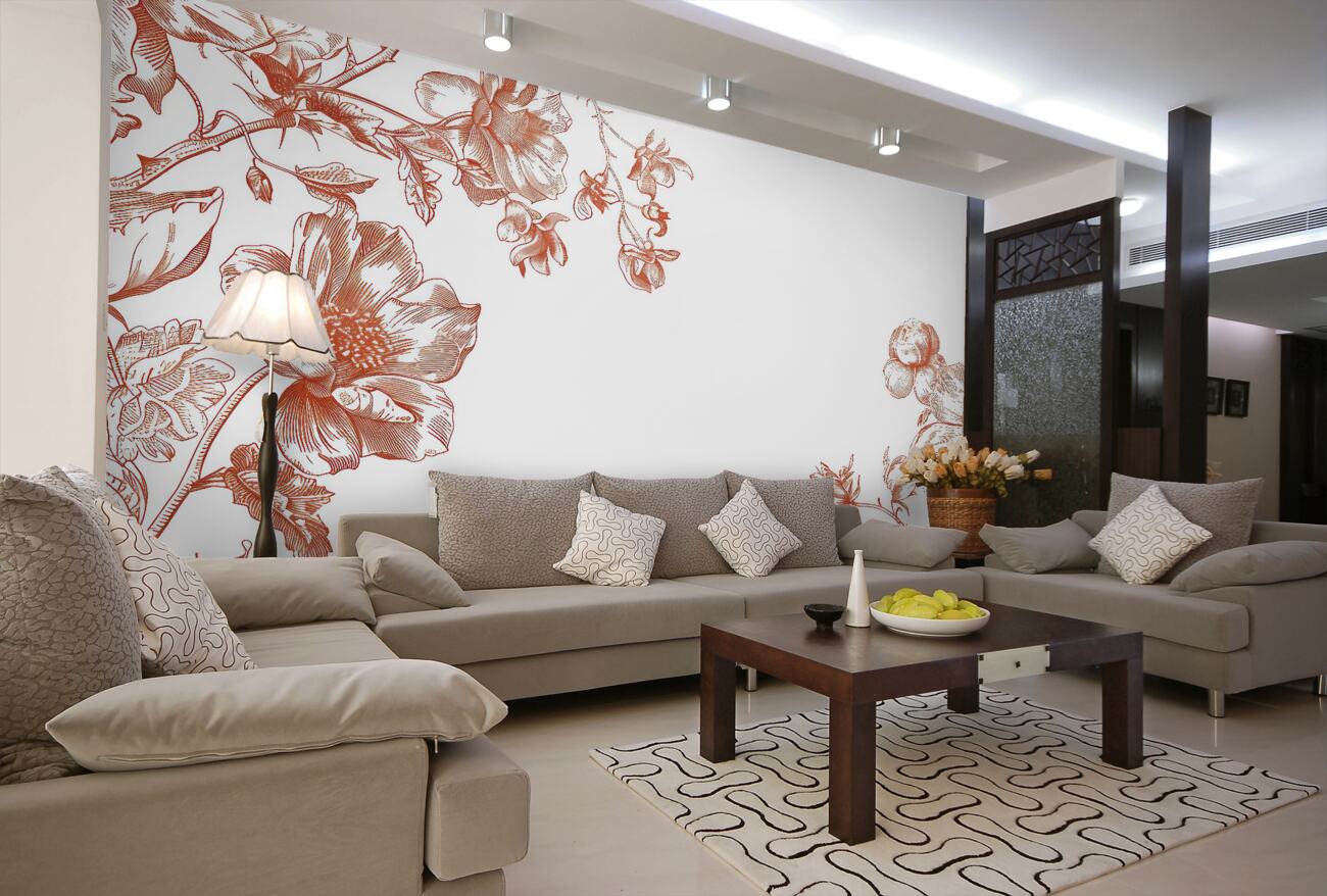 Tapeta Fototapeta Lekkie kwiaty w ornamencie na białym tle (artykuł u11694 ) z kategorii Fototapety Kwiaty