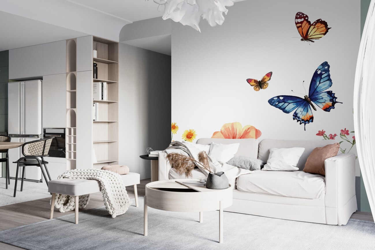 Tapeta Fototapeta Motyle i multi -cudzkie make (artykuł a99965 ) z kategorii Fototapety Kwiaty