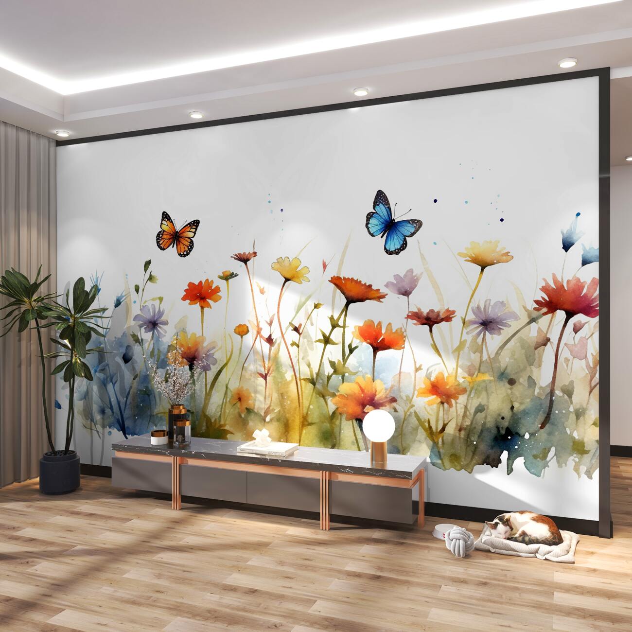 Tapeta Fototapeta Motyle nad kwitnącymi kwiatami (artykuł a99739 ) z kategorii Fototapety Kwiaty