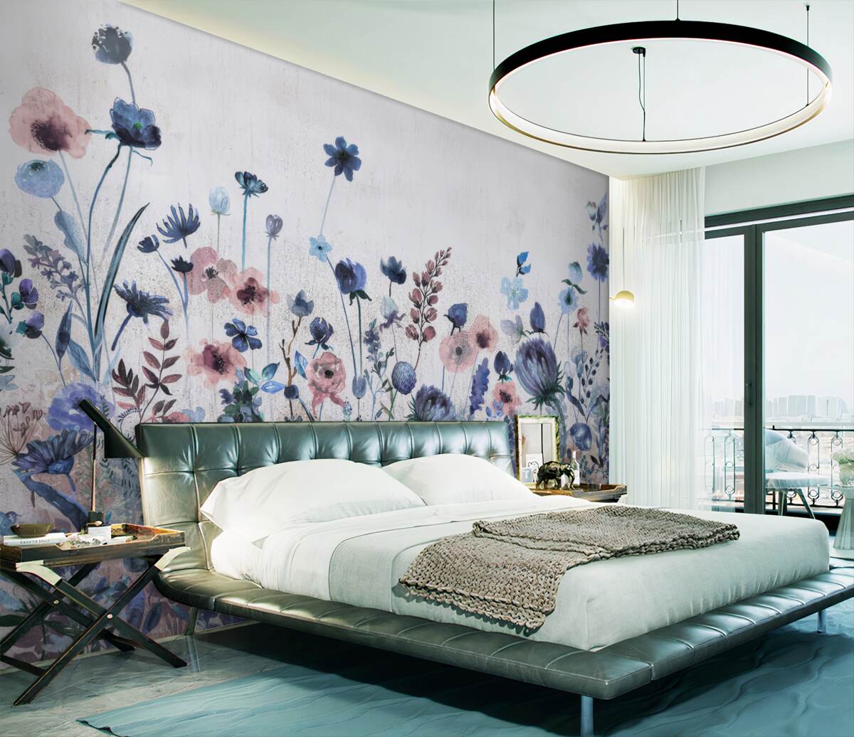Tapeta Fototapeta Niebieskie i różowe rośliny i kwiaty (artykuł a97967 ) z kategorii Fototapety Kwiaty