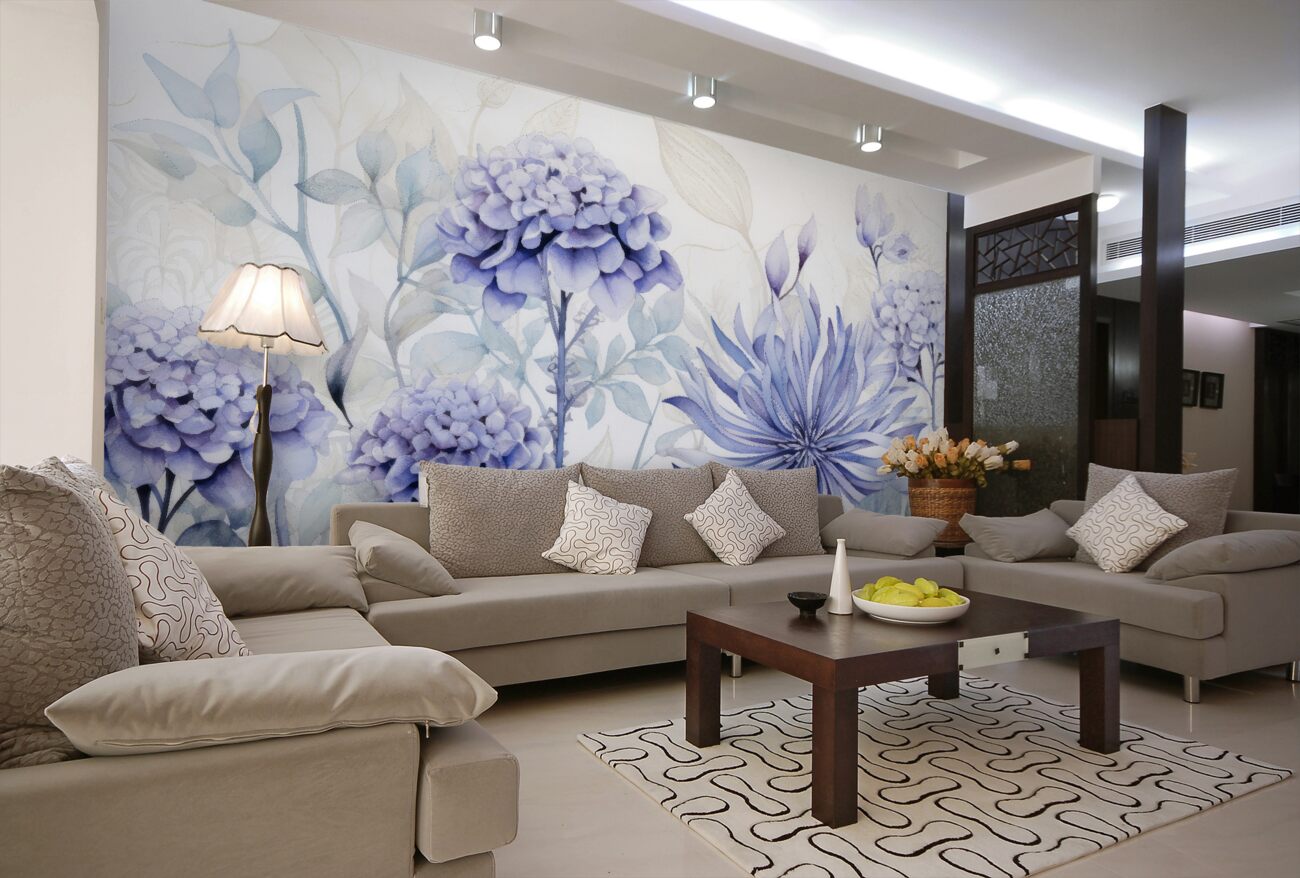 Tapeta Fototapeta Niebieskie kwiaty i hortensje (artykuł u13968 ) z kategorii Fototapety Kwiaty