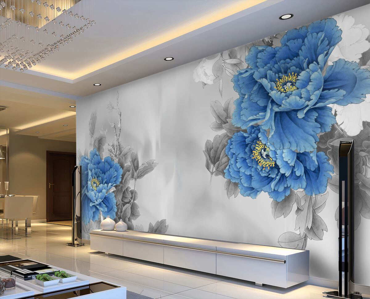Tapeta Fototapeta Niebieskie kwiaty na szarym tle (artykuł a98812 ) z kategorii Fototapety Kwiaty
