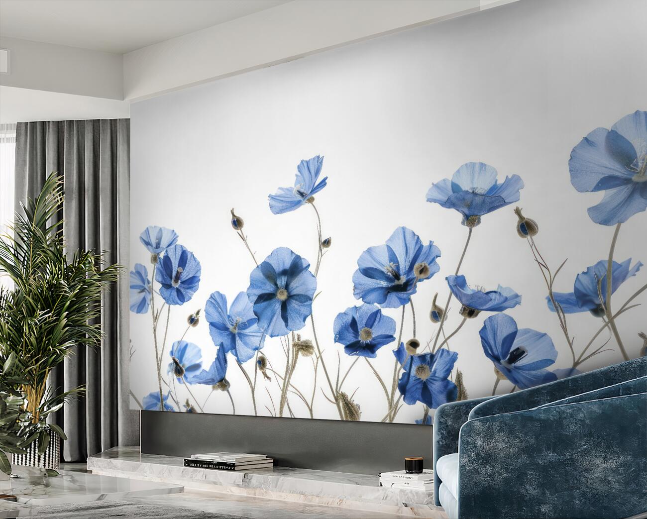 Tapeta Fototapeta Niebieskie smukłe thallustracje gęstych marek (artykuł u13970 ) z kategorii Fototapety Kwiaty