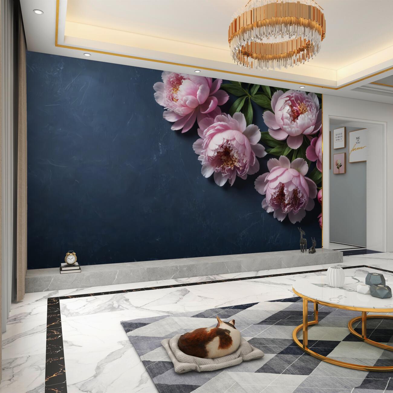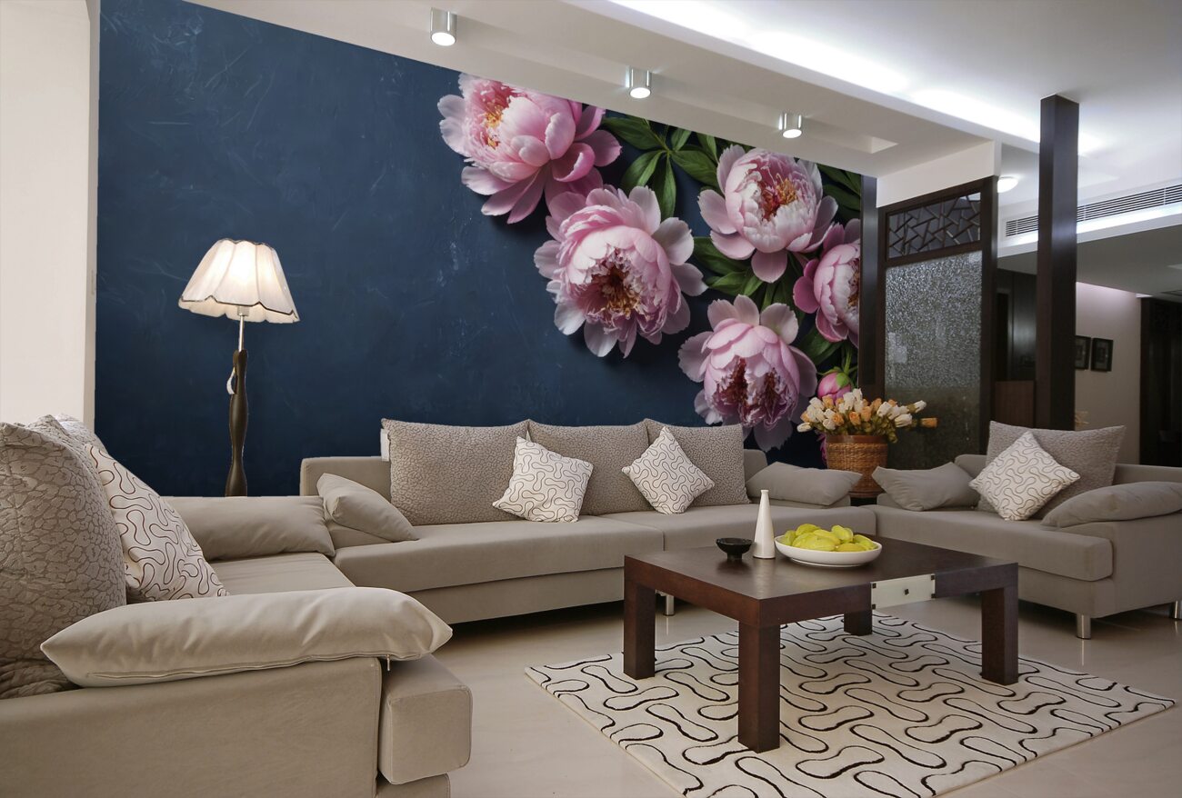 Tapeta Fototapeta Odgałęzione różowe piwonie na ciemnym tle (artykuł u11882 ) z kategorii Fototapety Kwiaty