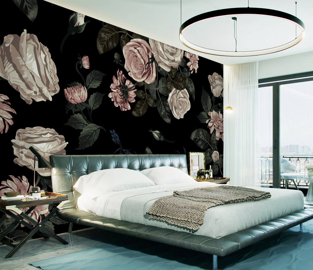 Tapeta Fototapeta otwarte kwiaty na czarnym tle (artykuł a93370 ) z kategorii Fototapety Kwiaty