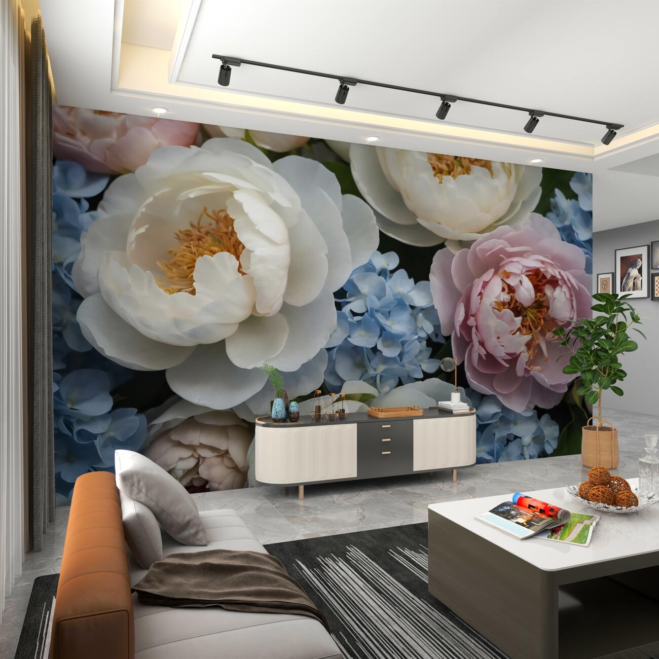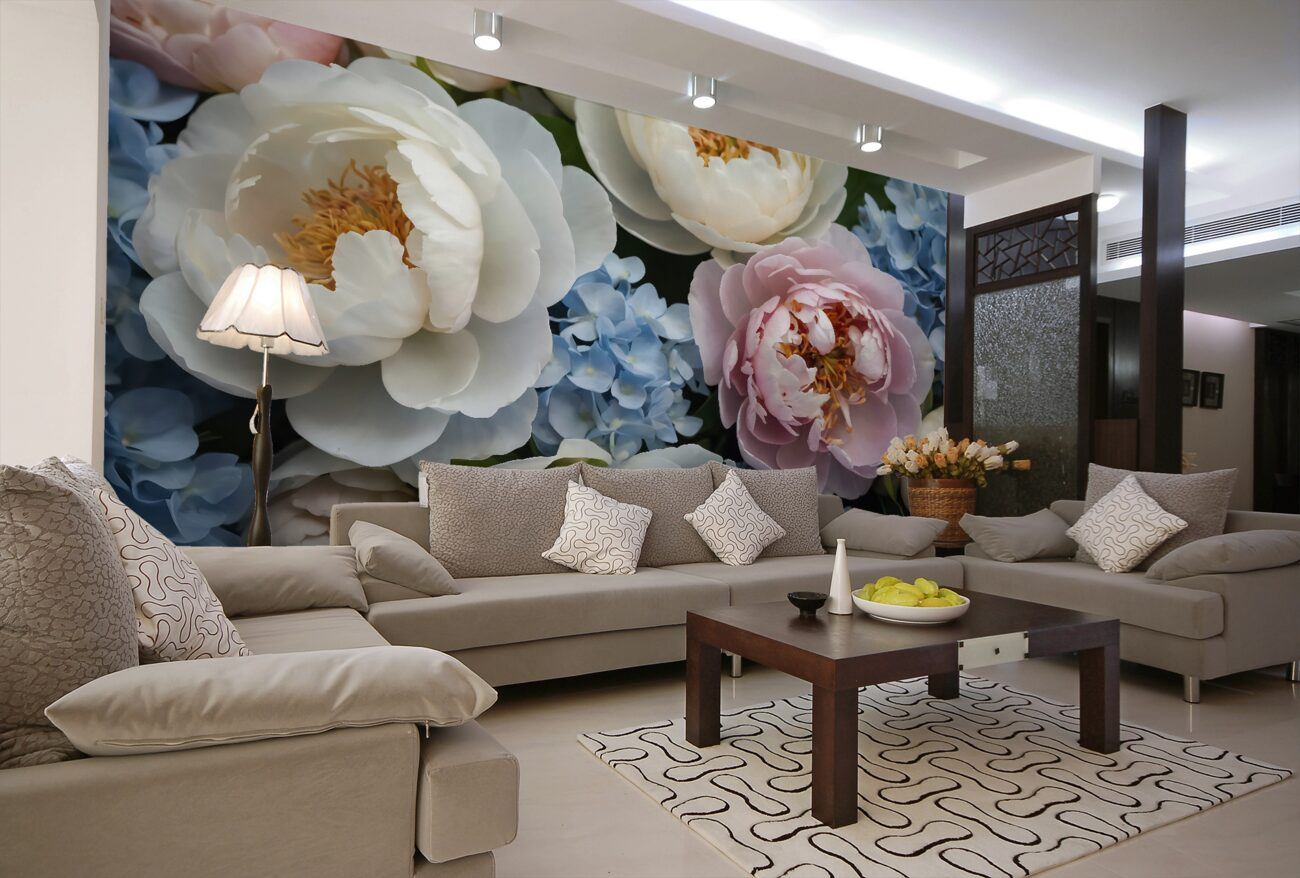 Tapeta Fototapeta Piony wielokolowane i hortensji (artykuł u11871 ) z kategorii Fototapety Kwiaty
