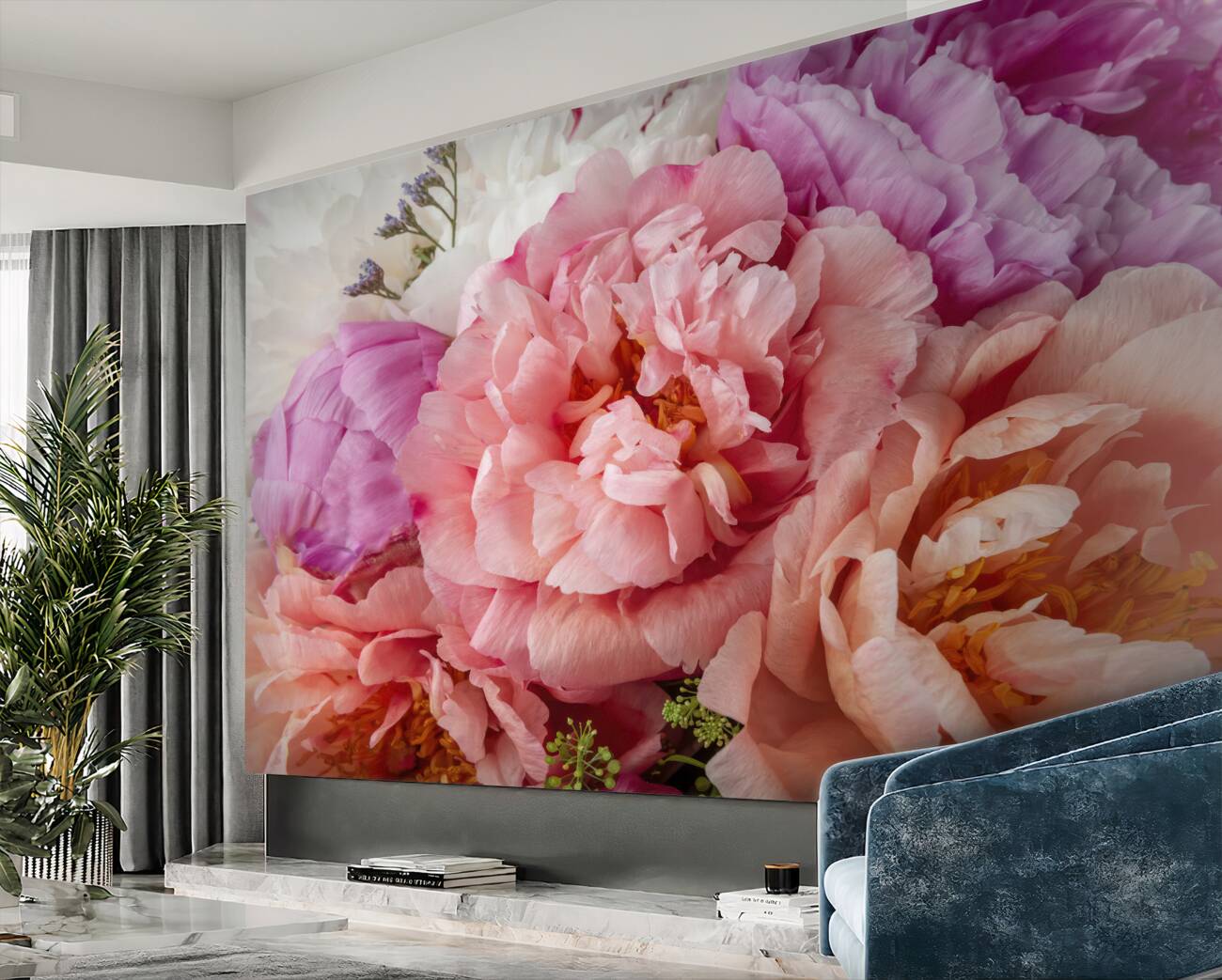 Tapeta Fototapeta Piwonie i delikatna róża w bukiecie (artykuł u11860 ) z kategorii Fototapety Kwiaty