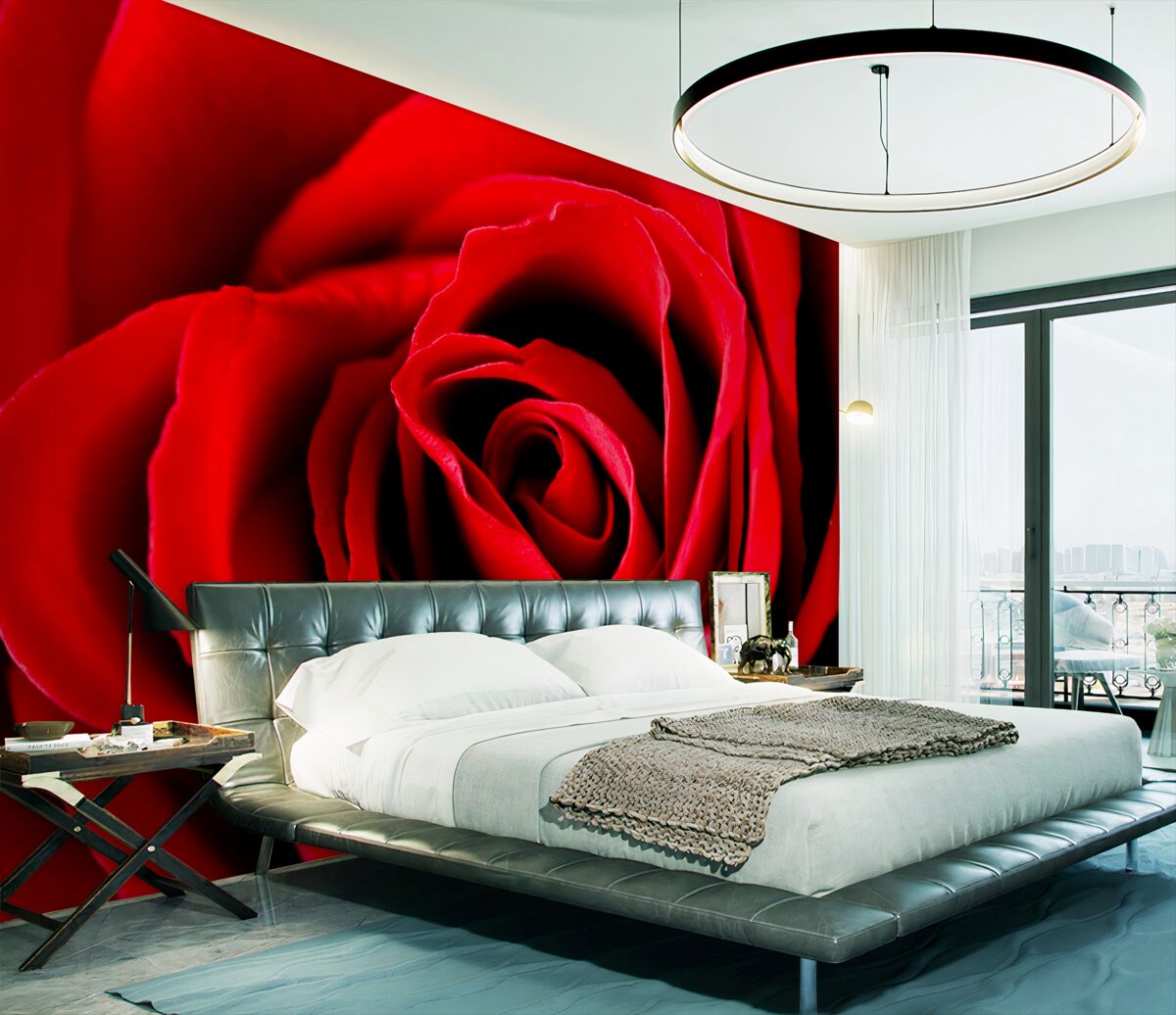 Tapeta Fototapeta Powiększone zdjęcie czerwonej róży (artykuł a97650 ) z kategorii Fototapety Kwiaty