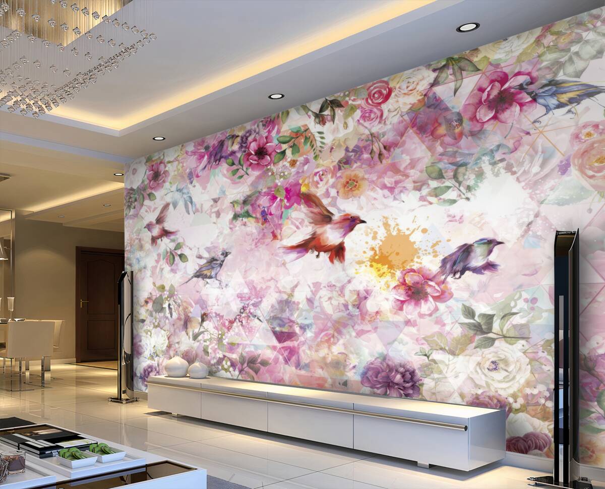 Tapeta Fototapeta Tło kwiatowe z ptakami (artykuł a97399 ) z kategorii Fototapety Kwiaty