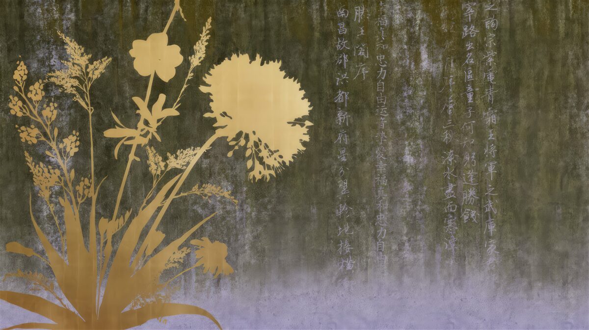 Tapeta Fototapeta Tło z hieroglifami i roślinami (artykuł a97977 ) z kategorii Fototapety Kwiaty