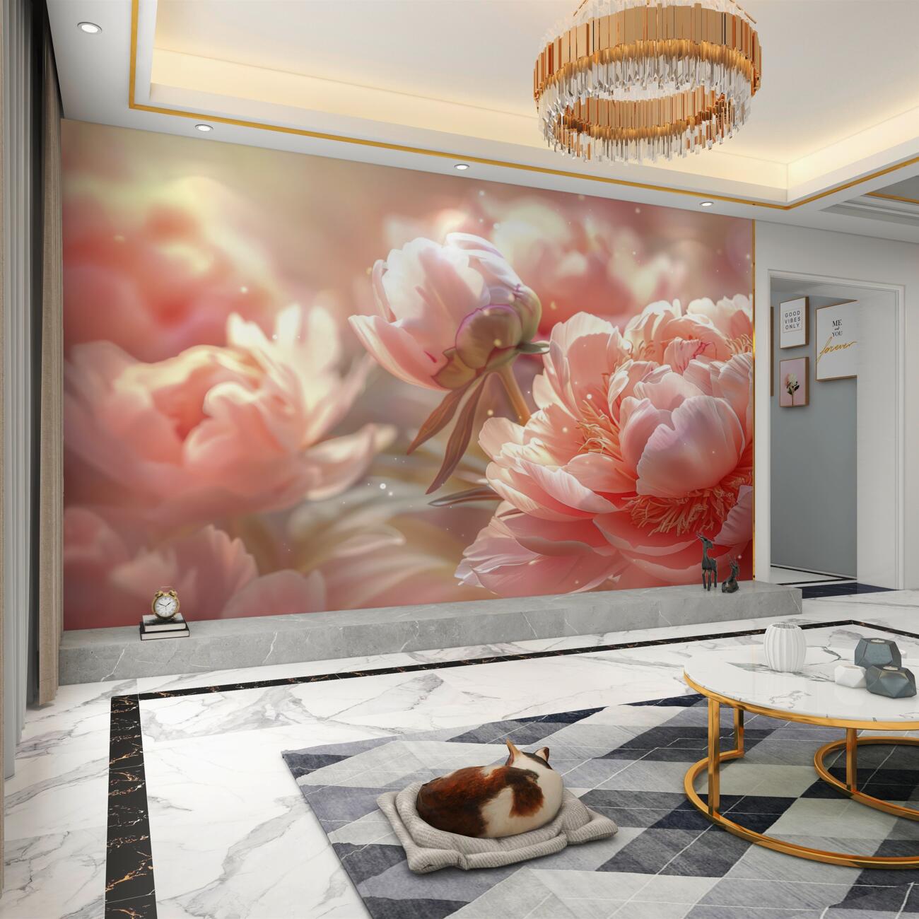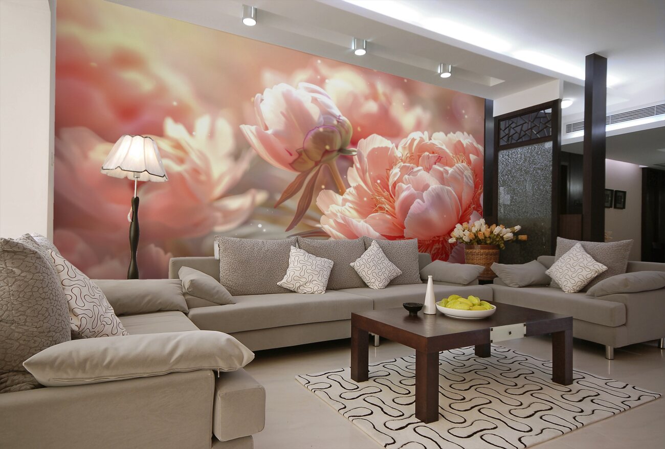 Tapeta Fototapeta Volume Różowe pionie o świcie (artykuł u11865 ) z kategorii Fototapety Kwiaty