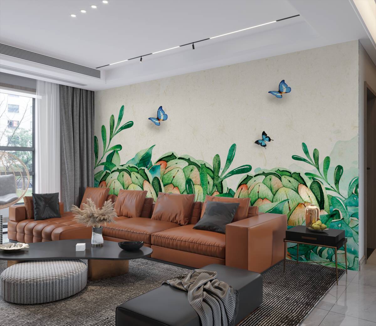 Tapeta Fototapeta Zieleń i motyle (artykuł a92859 ) z kategorii Fototapety Kwiaty