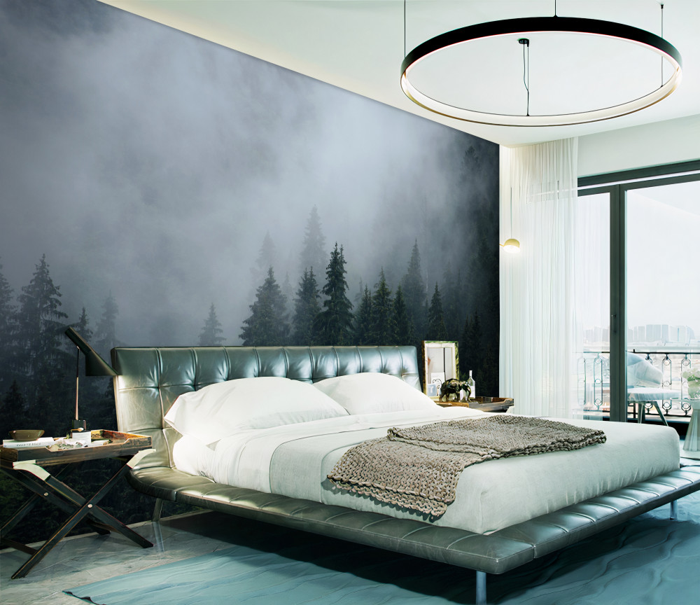 Tapeta Fototapeta mgła pojawia się w lesie iglastym (artykuł a92700 ) z kategorii Fototapety Las we Mgle