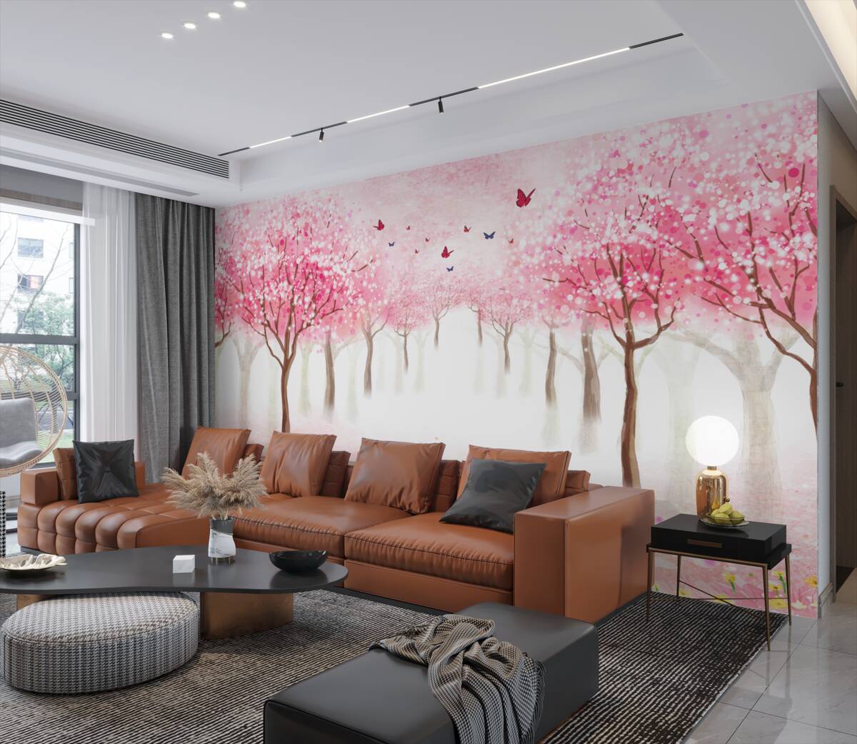 Tapeta Fototapeta Aleja Sakura w akwareli (artykuł a98305 ) z kategorii Fototapety Las