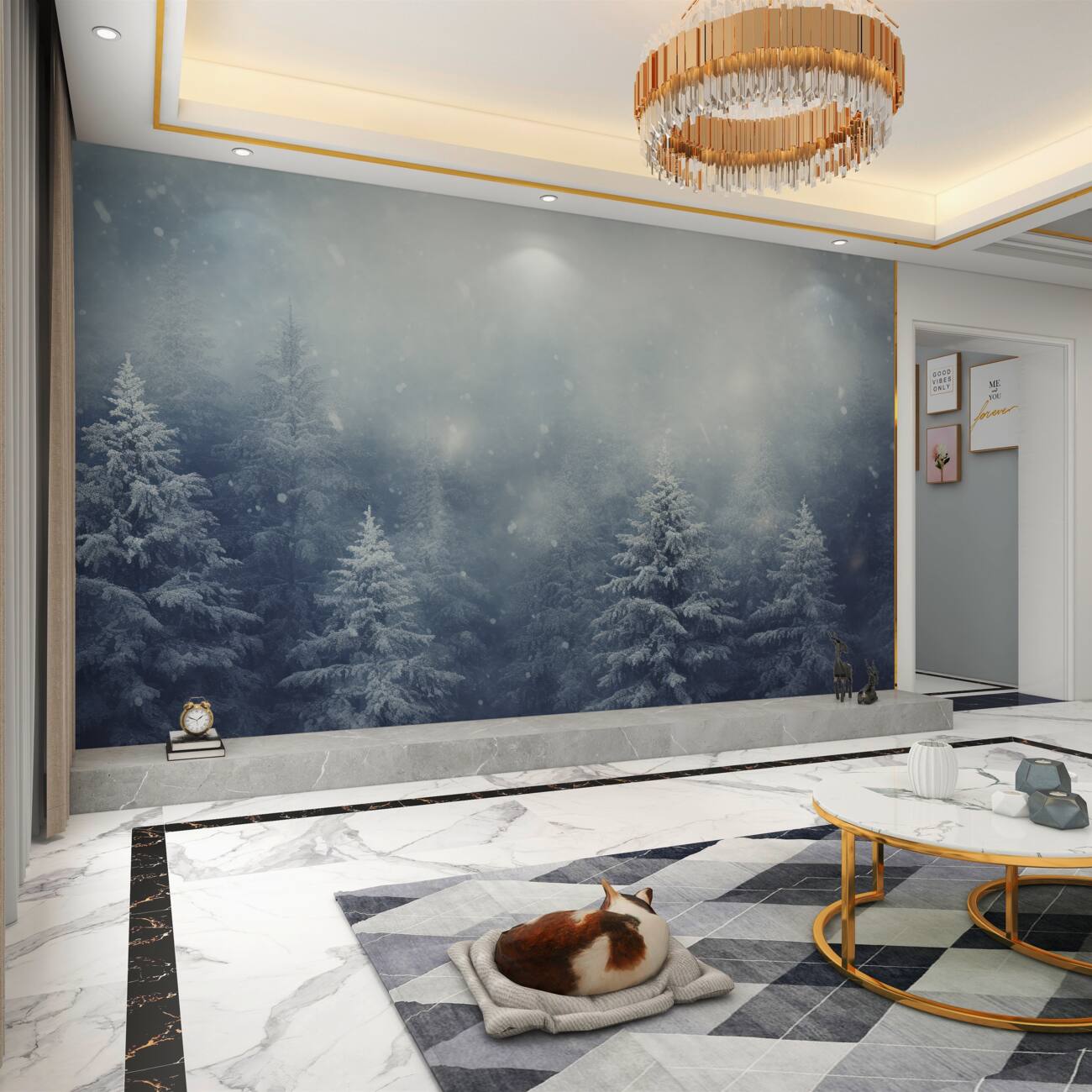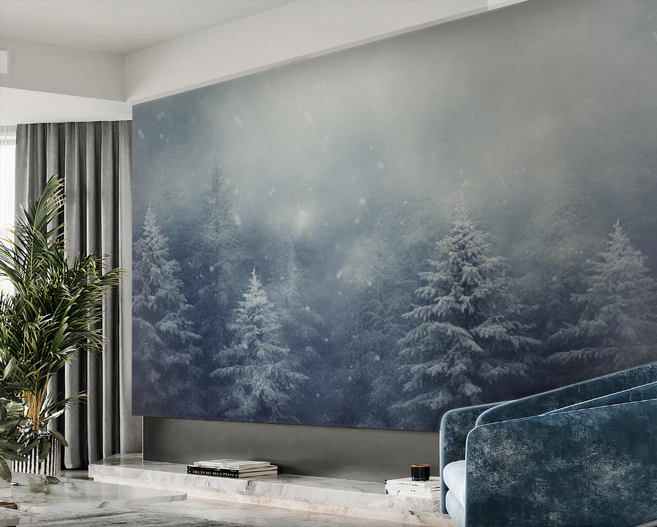 Tapeta Fototapeta Drzewa iglaste uderzają przez mgłę (artykuł u14472 ) z kategorii Fototapety Las