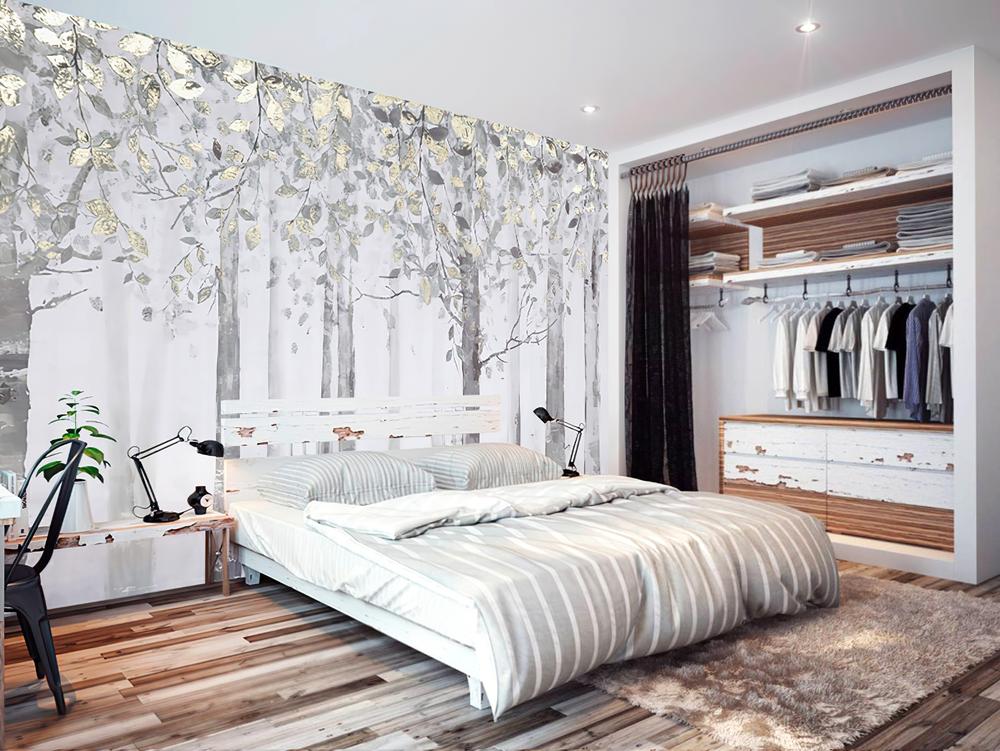 Tapeta Fototapeta drzewa minimalistyczna szare złote (artykuł a480 ) z kategorii Fototapety Las