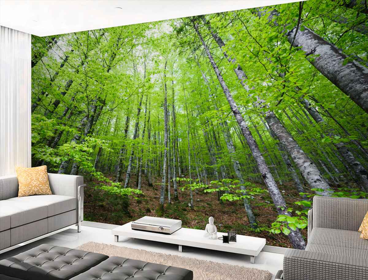 Tapeta Fototapeta Jasnozielone korony leśne (artykuł a98364 ) z kategorii Fototapety Las