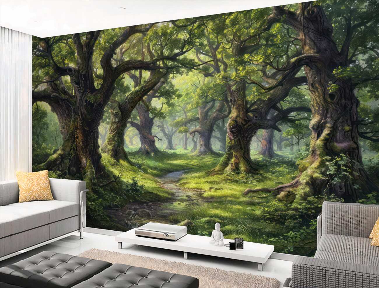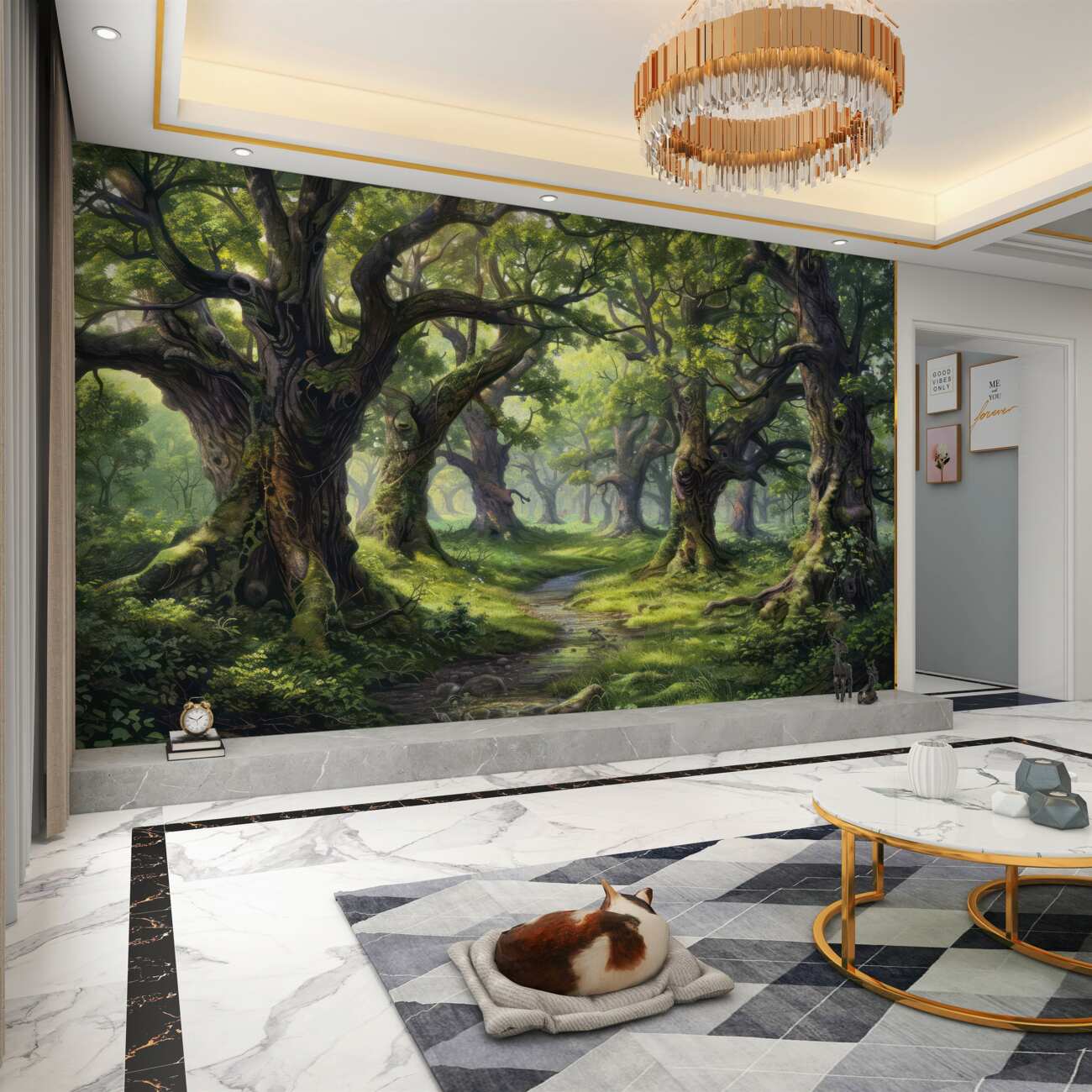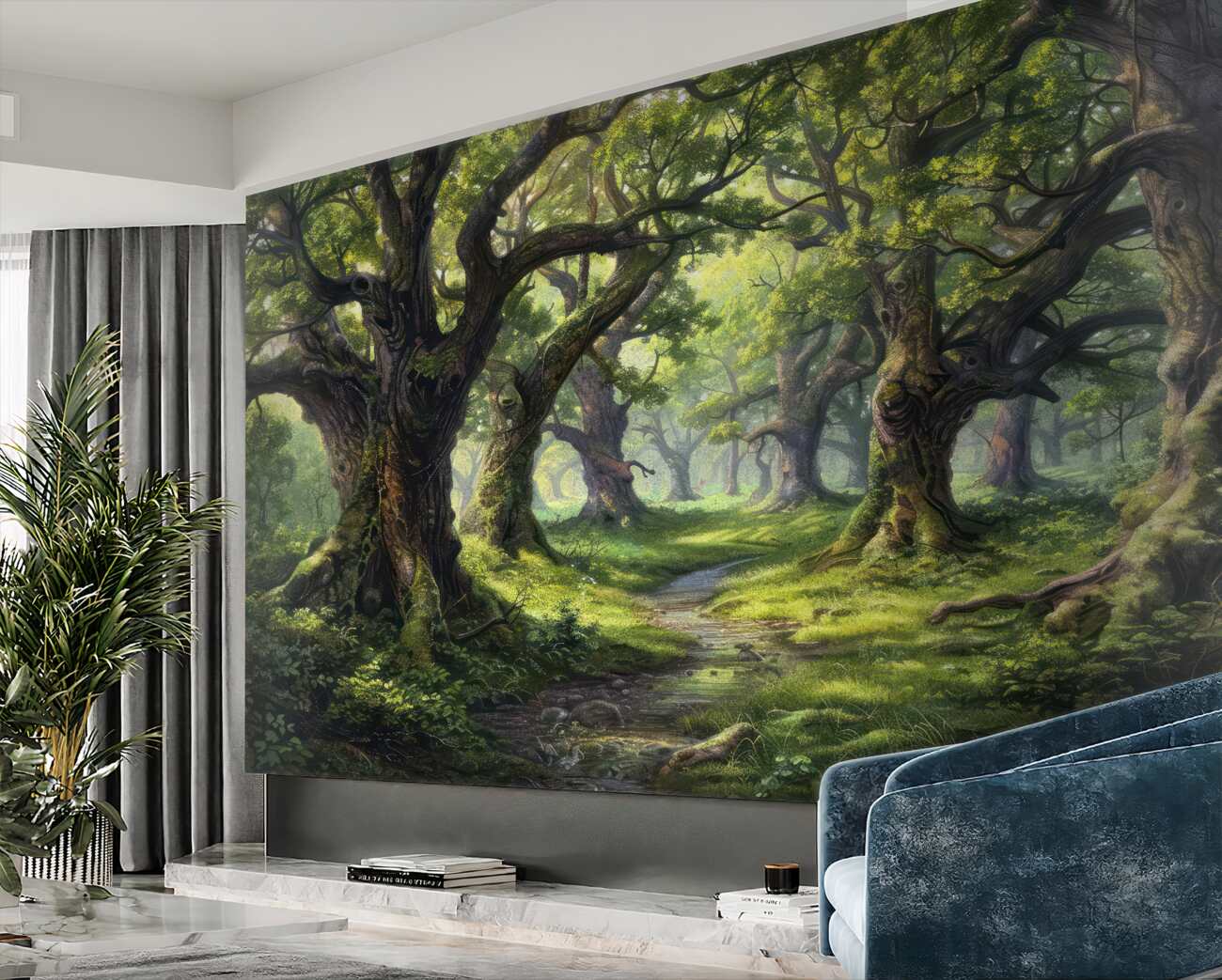 Tapeta Fototapeta Potężne stare drzewa i szlak (artykuł u14143 ) z kategorii Fototapety Las